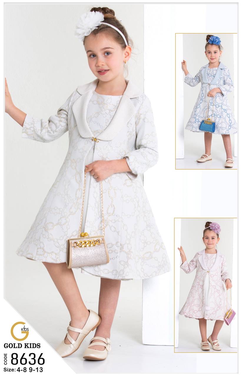 طقم فستان بناتي فاخر مكوّن من فستان أنيق مع جاكيت متناسق،